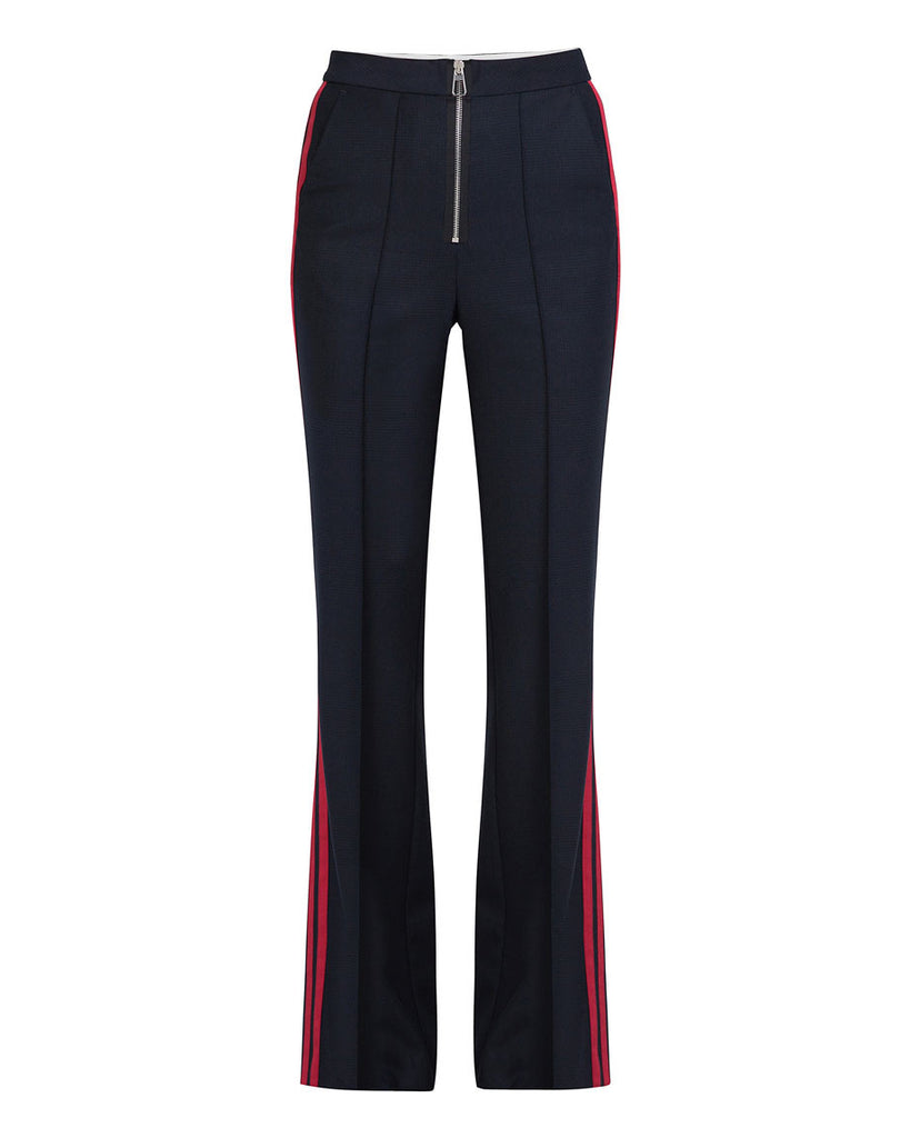 Carmen’s pieces always feel sophisticated with fashion elements and are designed with acute attention to fit, cut and details. Tailored from mid-weight stretch-twill these pants are detailed with a subtle check that give the fabric an extra interesting value. The special zipper and tapes at the sides makes these pants a real fashion statement.HIGH WAIST FANCY STRETCH-TWILL FLARELEG WITH TAPE